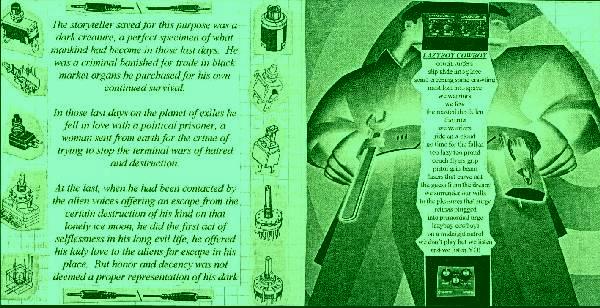 The storyteller saved for this purpose was a dark creature, a perfect specimen of what mankind had become in those last days. He was a criminal banished for trade in black market organs he purchased for his own continued survival.