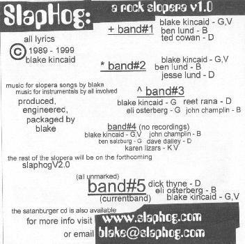 Here's what's on the SlapHog: a rock slopera v1.0 CD:
